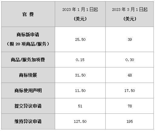 涉及商標(biāo)相關(guān)業(yè)務(wù)的最新收費(fèi)以及實(shí)施階段具體如下(依據(jù)2022 年 12 月 27 日的匯率):