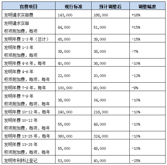 本次計(jì)劃調(diào)整的專(zhuān)利官費(fèi)項(xiàng)目主要內(nèi)容,如下: