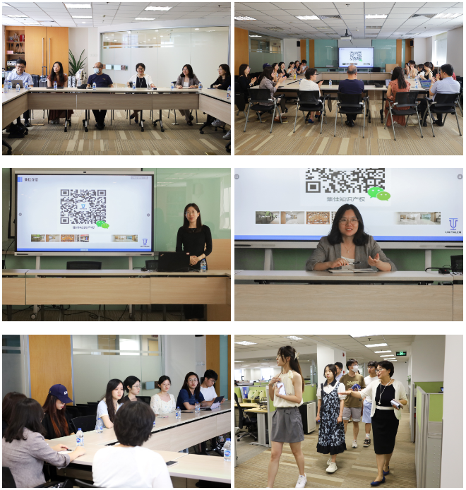 7月4日,同濟(jì)大學(xué)上海國際知識(shí)產(chǎn)權(quán)學(xué)院研學(xué)團(tuán)在學(xué)院黨委書記覃文忠主任、學(xué)院助理研究員劉迪老師、學(xué)院輔導(dǎo)員韓越老師的帶隊(duì)下訪問集佳,開展研學(xué)交流活動(dòng),集佳人力資源部高巍主任、李珊珊、同濟(jì)大學(xué)校友伍君律師等熱情接待來訪師生。
