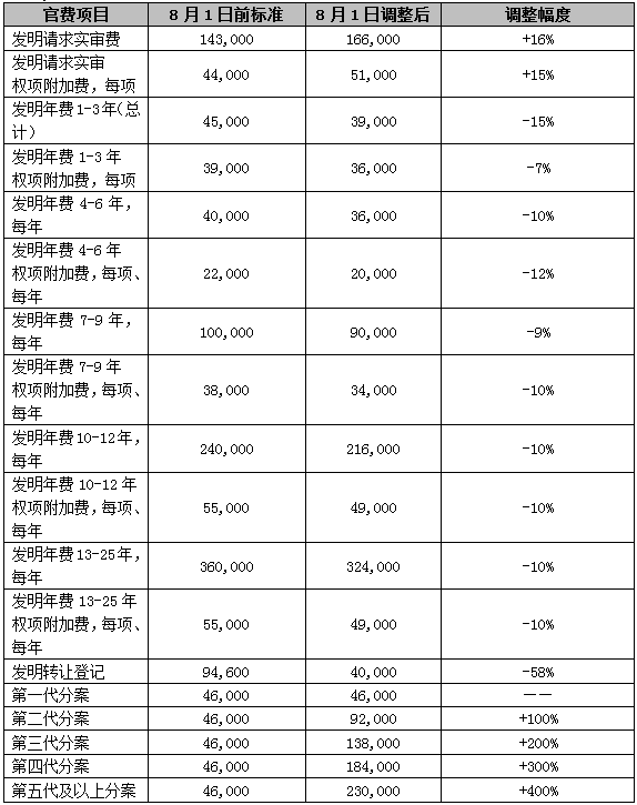 本次調(diào)整的專利官費項目主要內(nèi)容如下: