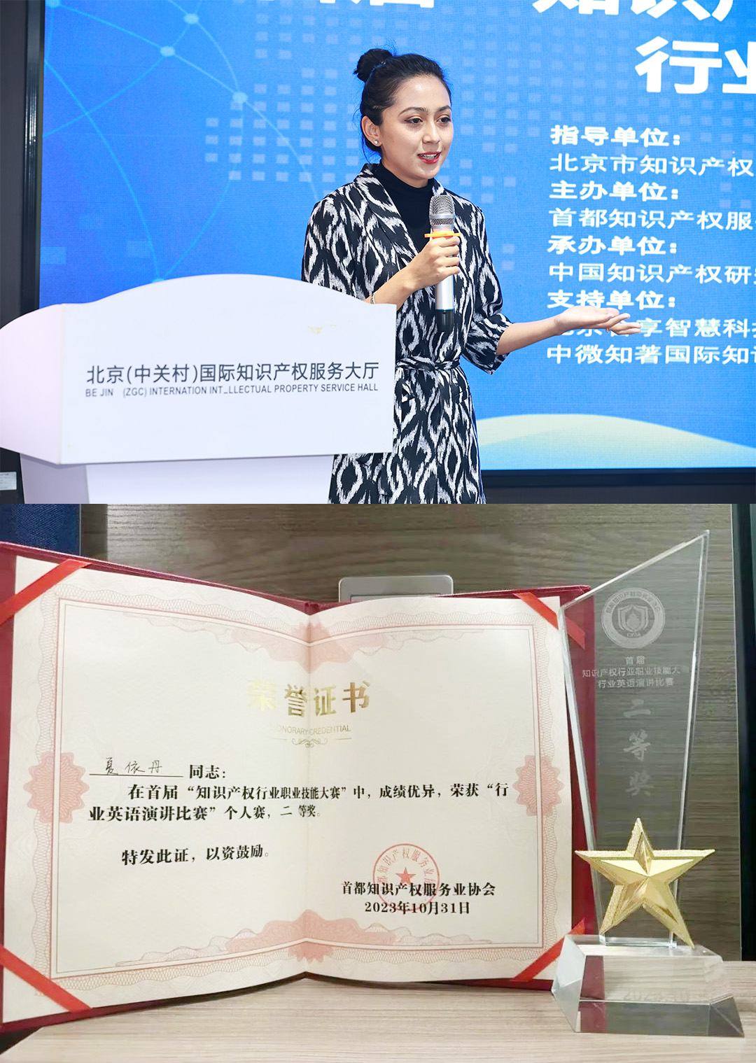近日,在北京市知識(shí)產(chǎn)權(quán)局、中關(guān)村科學(xué)城管委會(huì)的指導(dǎo)下,由首都知識(shí)產(chǎn)權(quán)服務(wù)業(yè)協(xié)會(huì)主辦,中國(guó)知識(shí)產(chǎn)權(quán)研究會(huì)專利專業(yè)委員會(huì)、北京(中關(guān)村)國(guó)際知識(shí)產(chǎn)權(quán)服務(wù)大廳承辦的首屆“知識(shí)產(chǎn)權(quán)行業(yè)職業(yè)技能大賽”(以下簡(jiǎn)稱“技能大賽”)總決賽成功舉辦。集佳優(yōu)秀青年代理人夏依丹榮獲本屆技能大賽“行業(yè)英語(yǔ)演講比賽”二等獎(jiǎng)。