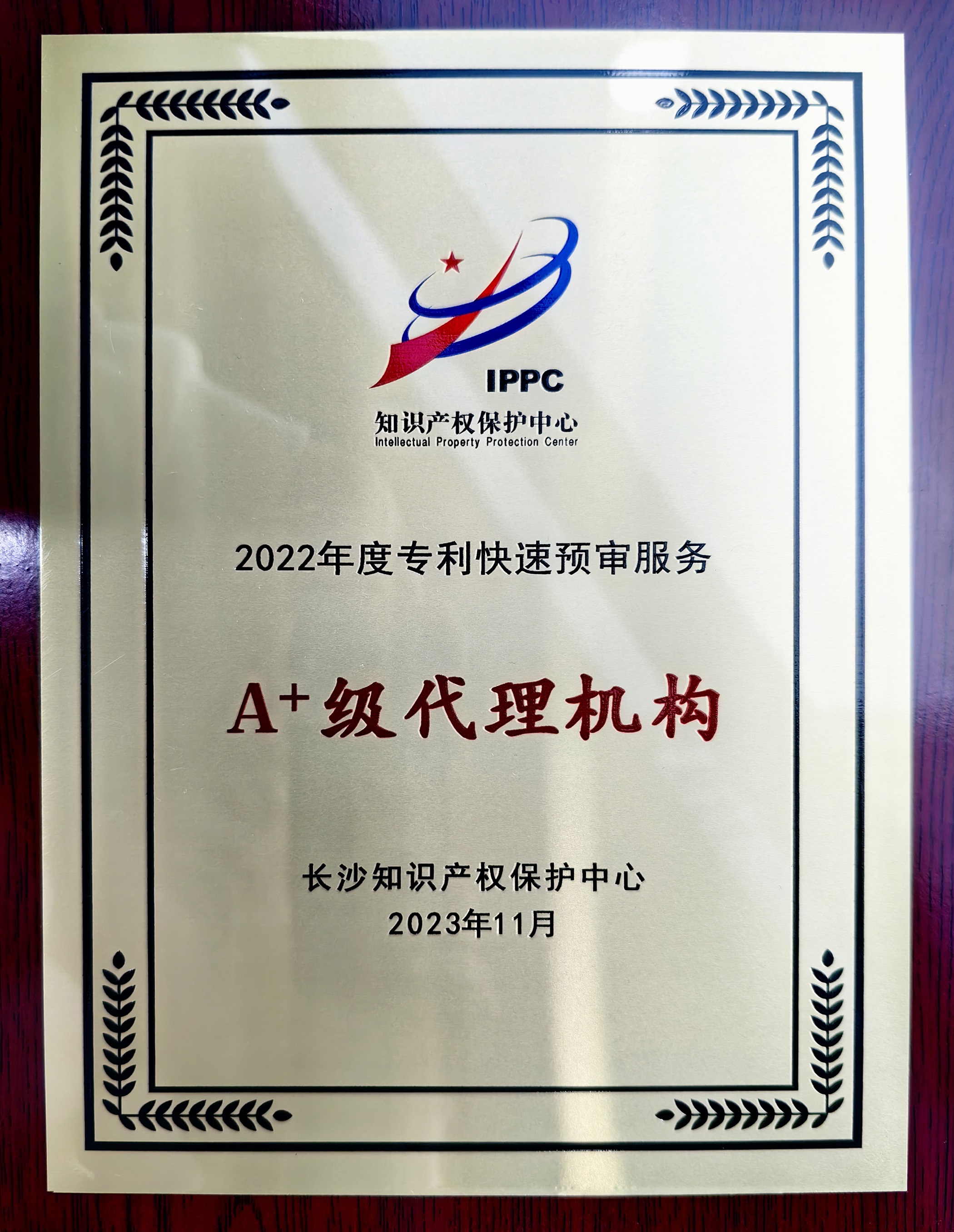 為了更好地激勵(lì)先進(jìn),推動(dòng)長(zhǎng)沙市專(zhuān)利預(yù)審工作不斷優(yōu)化升級(jí),近期,長(zhǎng)沙知識(shí)產(chǎn)權(quán)保護(hù)中心對(duì)備案主體和專(zhuān)利代理機(jī)構(gòu)分別開(kāi)展了分類(lèi)分級(jí)評(píng)價(jià)工作。集佳憑借優(yōu)質(zhì)的專(zhuān)利代理服務(wù),獲評(píng)為“A+級(jí)專(zhuān)利代理機(jī)構(gòu)”,并在11月15日長(zhǎng)沙知識(shí)產(chǎn)權(quán)保護(hù)中心舉辦的“2023企業(yè)知識(shí)產(chǎn)權(quán)精英人才訓(xùn)練營(yíng)”開(kāi)班儀式上獲頒榮譽(yù)獎(jiǎng)牌。