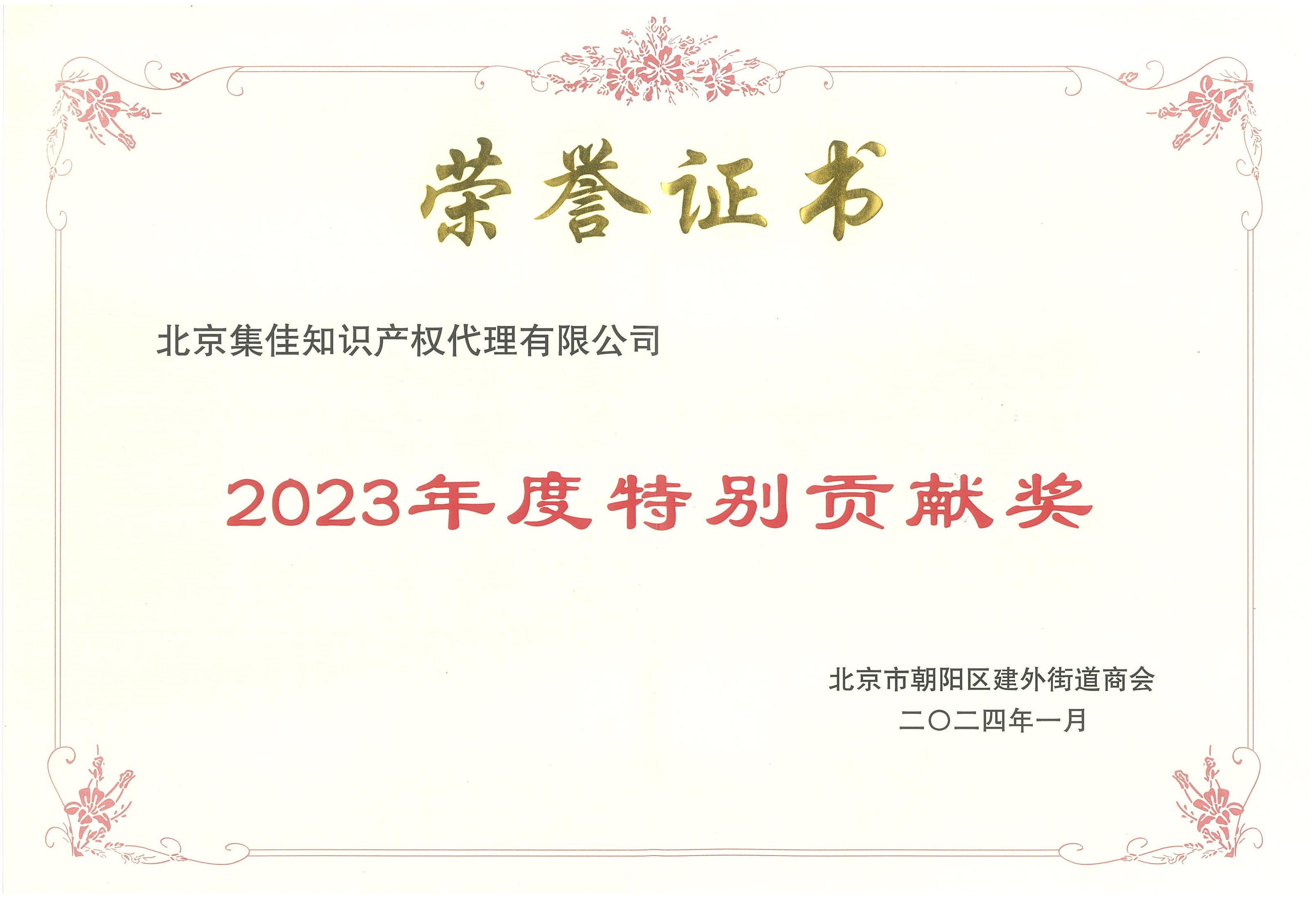 近日,集佳喜獲朝陽(yáng)區(qū)建外街道商會(huì)授予“2023年度特別貢獻(xiàn)獎(jiǎng)”榮譽(yù)稱號(hào),感謝集佳在建外街道商會(huì)組織的各項(xiàng)工作中做出的積極貢獻(xiàn)。