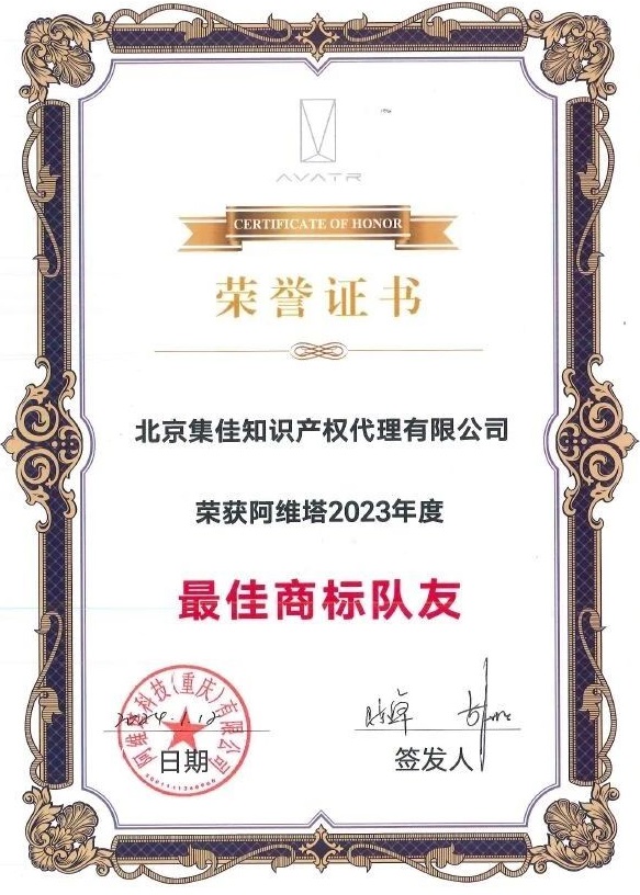 近日,集佳優(yōu)質(zhì)服務(wù)再次喜獲客戶點贊——阿維塔科技(重慶)有限公司(以下簡稱“阿維塔”)授予集佳2023年度“最佳商標(biāo)隊友”榮譽稱號