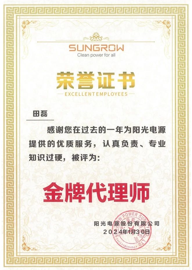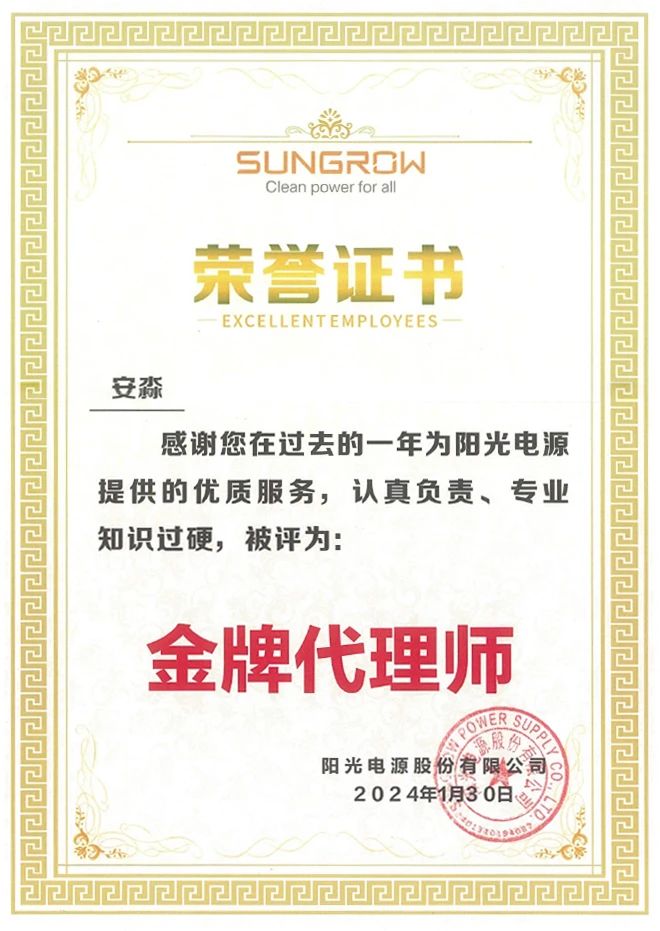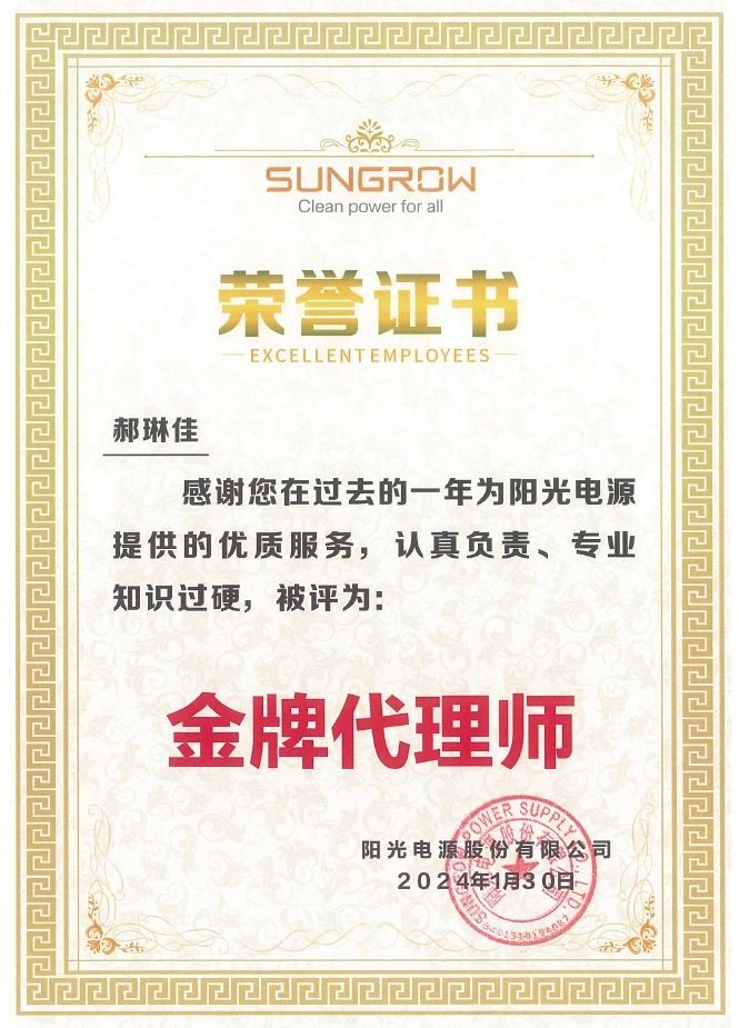 新春伊始,集佳再獲喜訊——陽(yáng)光電源股份有限公司授予集佳“優(yōu)秀合作伙伴”榮譽(yù)稱(chēng)號(hào)。
