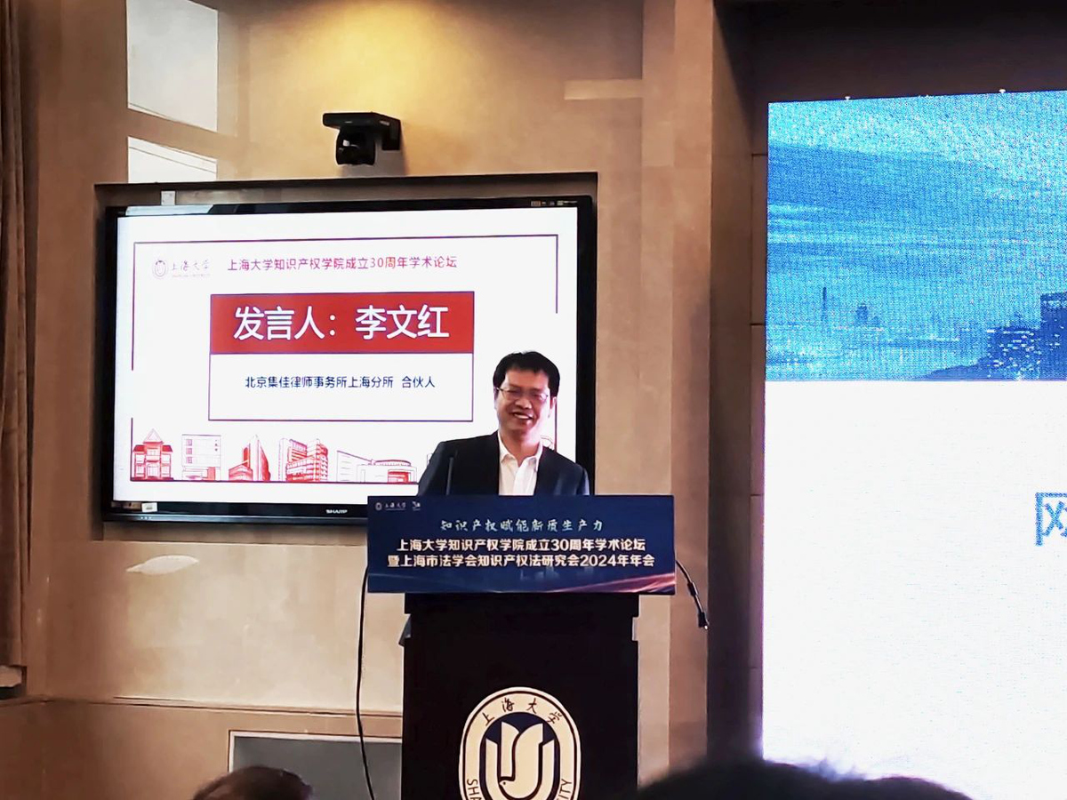 集佳律所上海分所主任、高級(jí)知識(shí)產(chǎn)權(quán)師李文紅博士應(yīng)邀出席大會(huì),并在“釋放知識(shí)產(chǎn)權(quán)價(jià)值 賦能新質(zhì)生產(chǎn)力”分論壇上發(fā)表演講,與來(lái)自眾多高校的專家學(xué)者和業(yè)界代表共同就知識(shí)產(chǎn)權(quán)價(jià)值的釋放與賦能新質(zhì)生產(chǎn)力的路徑進(jìn)行了深入探討。