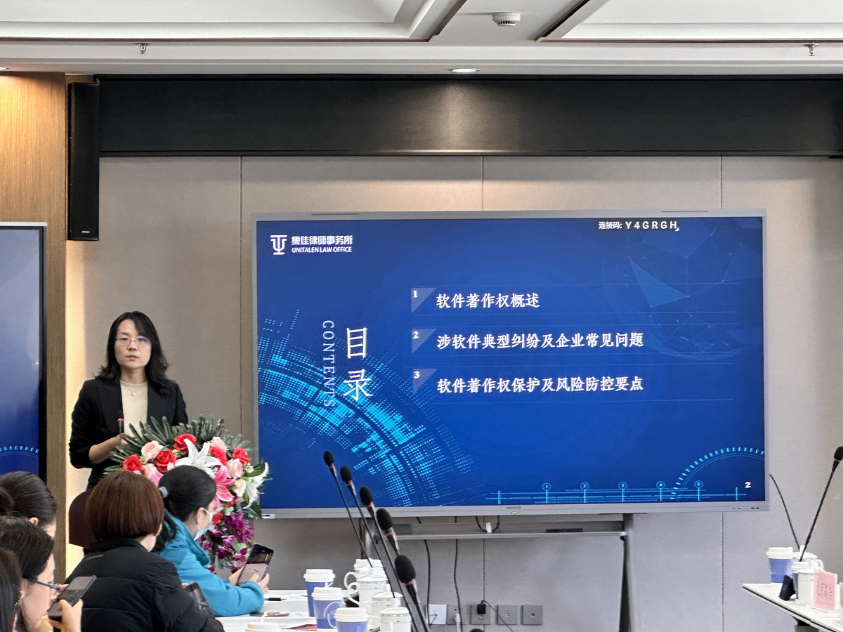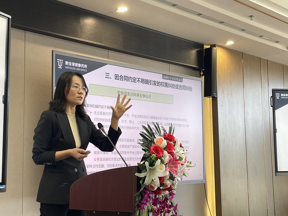 周丹丹律師在簡要介紹軟件著作權(quán)的保護范圍及保護期限、軟件著作權(quán)人享有的基本權(quán)利、常見的軟件著作權(quán)侵權(quán)行為等相關(guān)法律知識的基礎(chǔ)上,結(jié)合多個典型案例,對“員工離職引發(fā)軟件代碼抄襲糾紛”、“盜版軟件/超范圍使用商業(yè)軟件的侵權(quán)糾紛”、“因合同約定不明確引發(fā)的權(quán)屬糾紛或合同糾紛”等常見的軟件著作權(quán)糾紛類型進行詳細解讀,深入分析各類糾紛中反映出的企業(yè)常見問題,進而從軟件著作權(quán)的登記、軟件使用證據(jù)沉淀、軟件開發(fā)合同/合作開發(fā)合同核心條款的擬定、軟件采購、軟件投訴應對、軟件源代碼管理等多個角度總結(jié)提煉出軟件著作權(quán)保護及風險防控的實務要點,為與會企業(yè)提供了專業(yè)指引,內(nèi)容豐富詳實,實用性極強。
