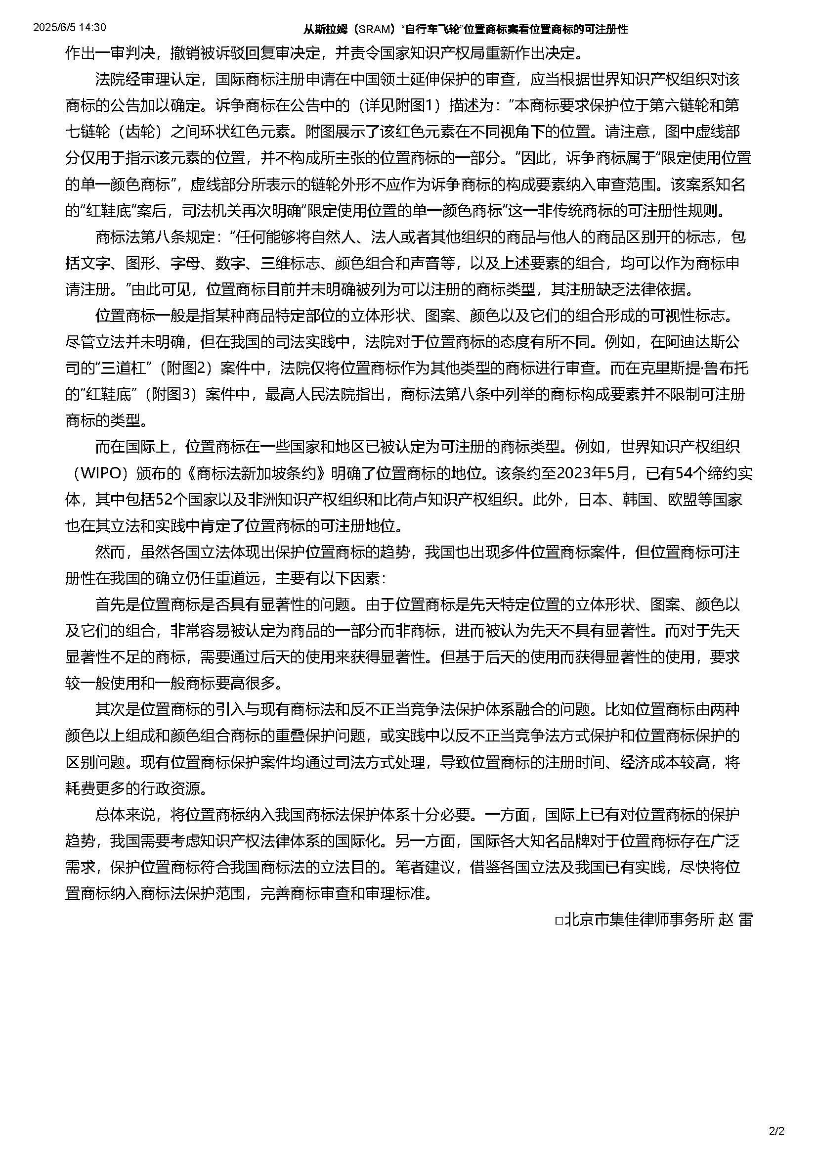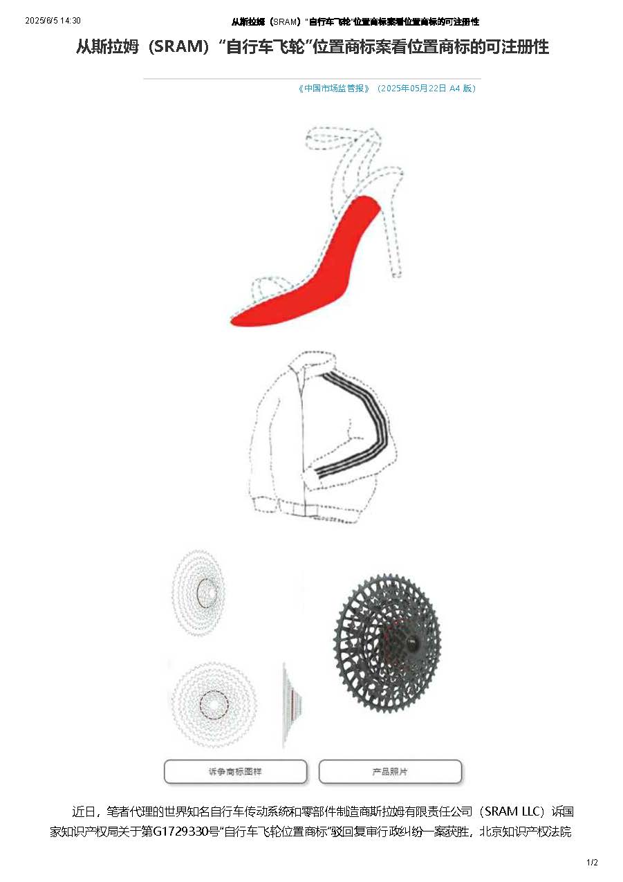 集佳文章《從斯拉姆(SRAM)“自行車飛輪”位置商標案看位置商標的可注冊性》在《中國市場監(jiān)管報》發(fā)表