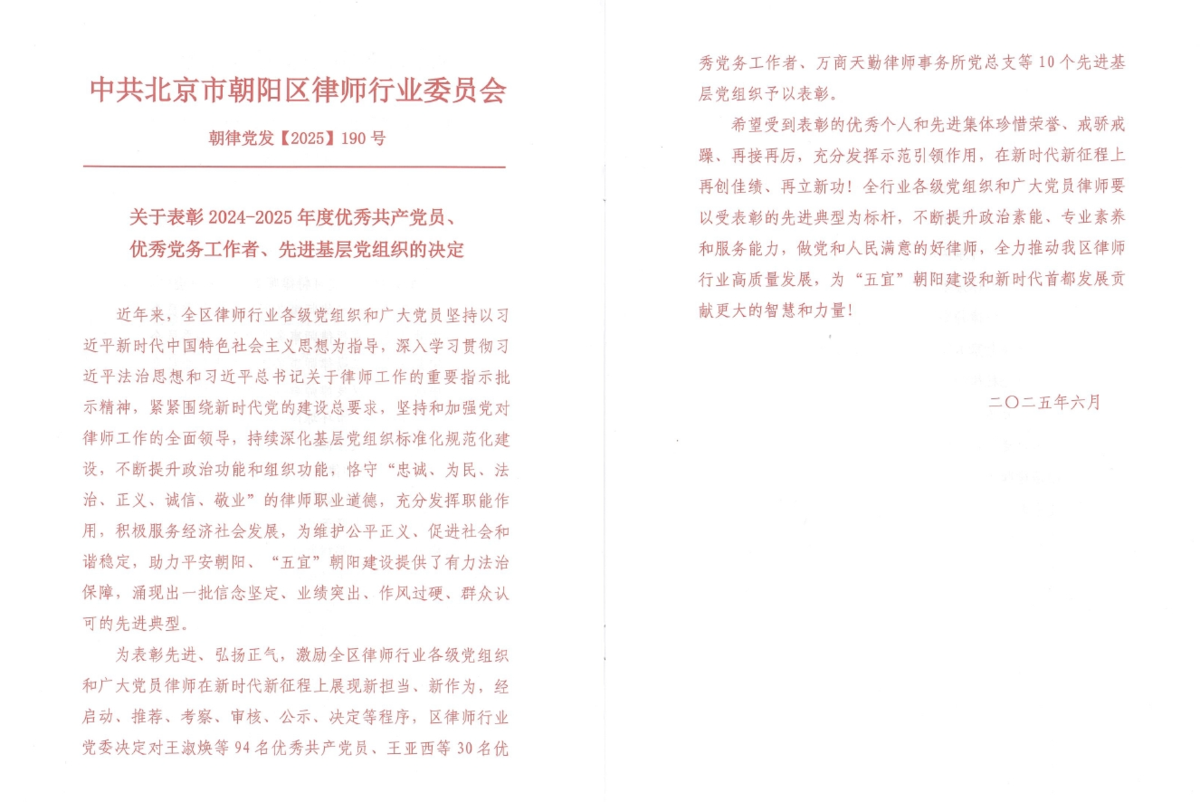 6月27日,朝陽(yáng)區(qū)律師行業(yè)黨委召開(kāi)了朝陽(yáng)區(qū)律師行業(yè)慶祝中國(guó)共產(chǎn)黨成立104周年暨總結(jié)表彰大會(huì),集佳律所聯(lián)合黨支部黨員黃鶯榮獲“朝陽(yáng)區(qū)律師行業(yè)優(yōu)秀共產(chǎn)黨員”稱號(hào),支部黨員汪琨榮獲“朝陽(yáng)區(qū)律師行業(yè)優(yōu)秀黨務(wù)工作者”稱號(hào)。
