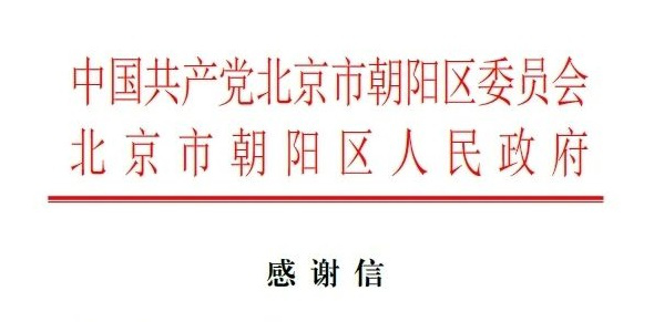 北京市朝陽區(qū)委、區(qū)政府向集佳發(fā)來感謝信
