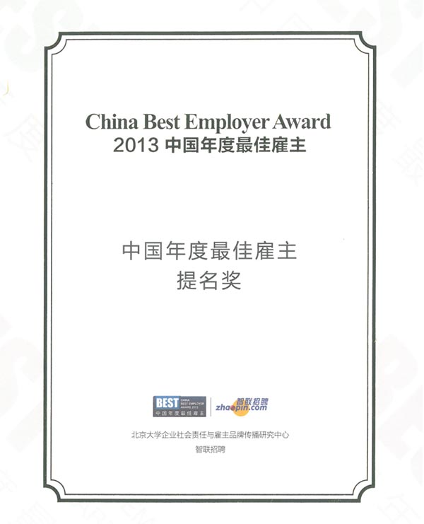 近日,“中國年度最佳雇主”(China Best Employer Award)榜單在三亞揭曉。集佳在本次評比中獲得“2013中國年度最佳雇主提名獎”。