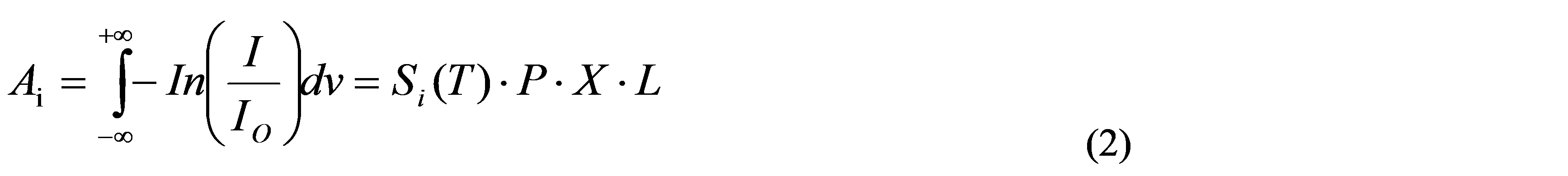 其中 P[atm] 為總壓,L[cm]為光程長度,S(T) [cm-2/atm]為吸收強(qiáng)度,A[cm-1]為光譜積分面積。