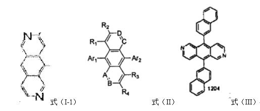 首先,確定審查意見所指出的共同結構是否正確,根據(jù)上面所說的第一種觀點,該申請的共同結構即為審查意見中所指出的結構;根據(jù)第二種與第三種觀點,將與母核吡啶并[3,4-g]異喹啉直接連接的變量R1、Q1與Q2引入共同結構的確定,但R1可為氫原子、氰基、碳原子數(shù)是1~30的烷基、取代或未取代的碳原子數(shù)6~50的芳基、取代或未取代的碳原子數(shù)5~50的雜環(huán)基、取代或未取代的碳原子數(shù)7~30的芳香族胺基、取代或未取代的碳原子數(shù)7~30的芳烷氧基或取代或未取代的碳原子數(shù)7~30的芳烷巰基;這幾者對母核所產(chǎn)生的電子效應、位阻效應等影響各異,也不是本領域公知的同一化合物類別;L1與L2可以為0或1,Q1和Q2獨立的選自氮、氧、硫、碳原子數(shù)6~30的芳基或碳原子數(shù)1~30的雜環(huán)基,其中,氮、氧與硫原子,其為化學領域常指的雜原子,三者對母核的影響類似,可視為本領域中公認的同一化合物類別,但其與芳基、雜環(huán)基差異較大,相互取代后,本領域技術人員并不能確定其能產(chǎn)生同樣的效果,因此不能視為同一化合物類別。由此可見,三種變量中各自所定義的可選擇的元素均不是本領域中公認的同一化合物類別,將變量引入后的結構也不是清楚和明確的,該申請的共同結構只能是審查員所指出的吡啶并[3,4-g]異喹啉(式(I-1))。