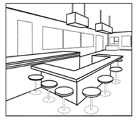 如提交店面外觀和內(nèi)部裝潢的立體商標(biāo)申請,可通過在圖片中表明虛實(shí)線,同時(shí)通過商標(biāo)描述告知“虛線僅表示店面形狀的示例,并不構(gòu)成商標(biāo)的一部分”,以表明要求受該立體商標(biāo)保護(hù)的部分僅為以下圖片中的實(shí)線,如以下示例2和示例3所示。
