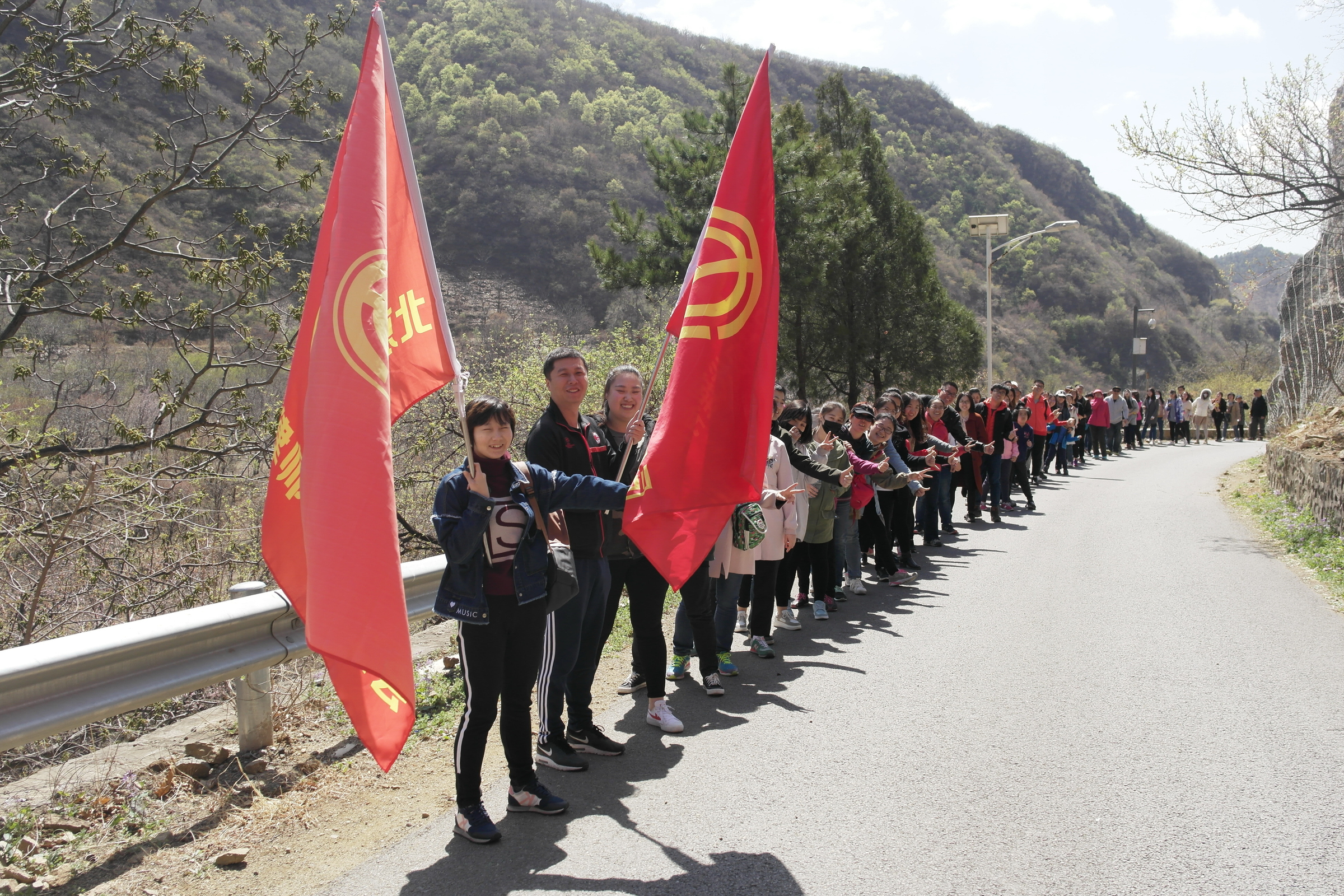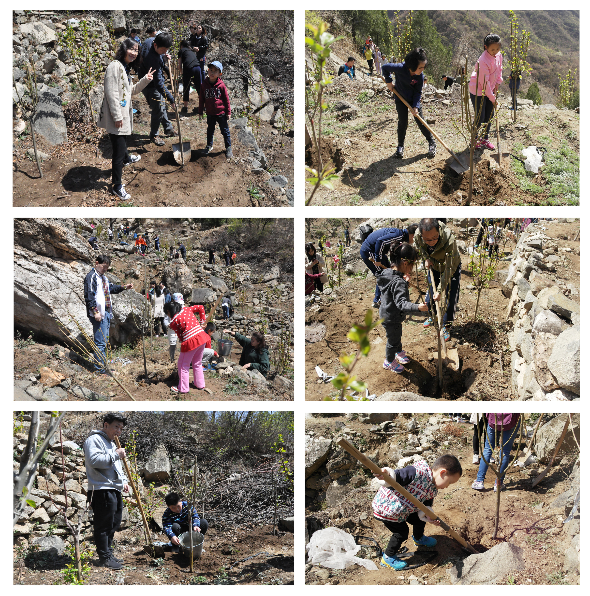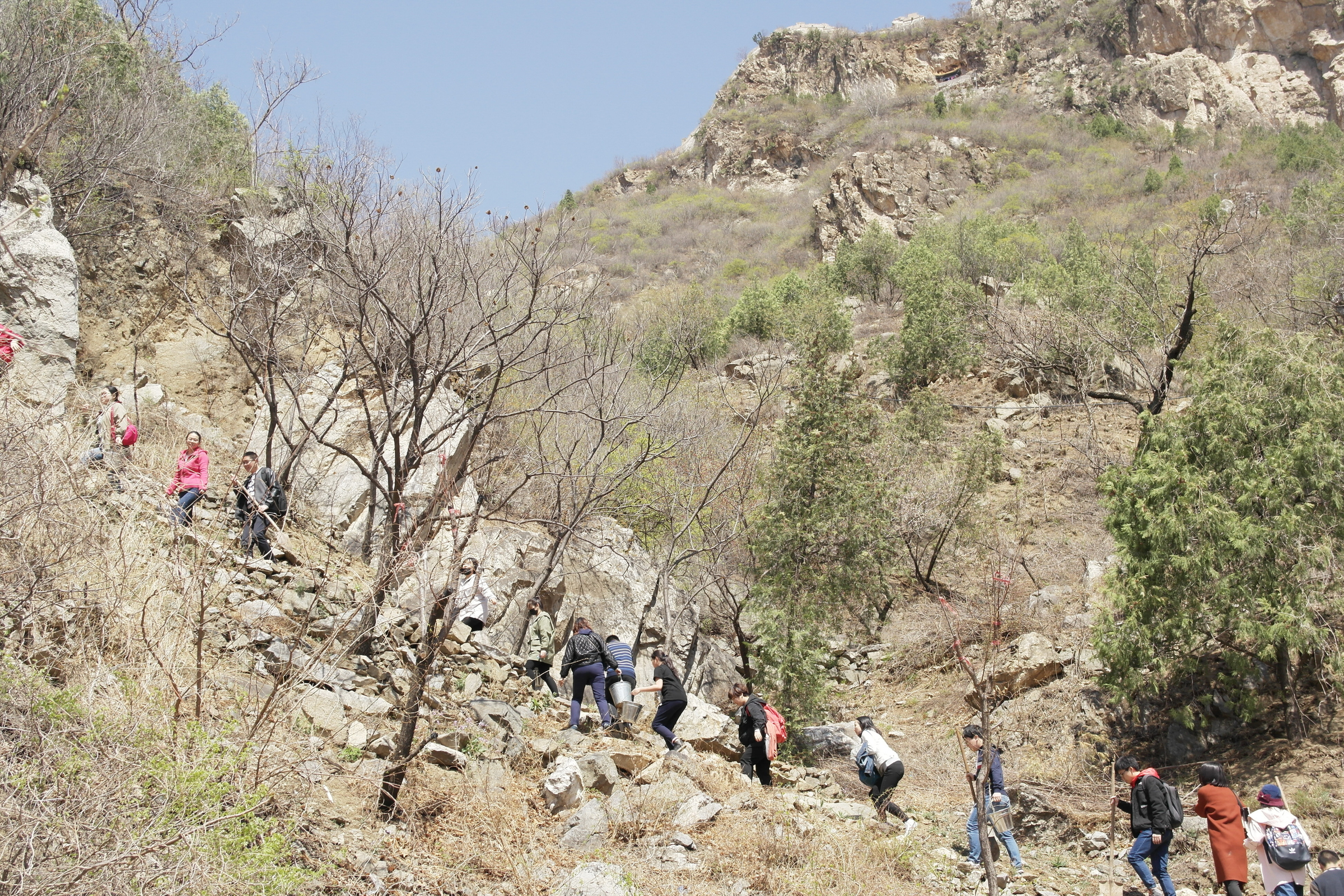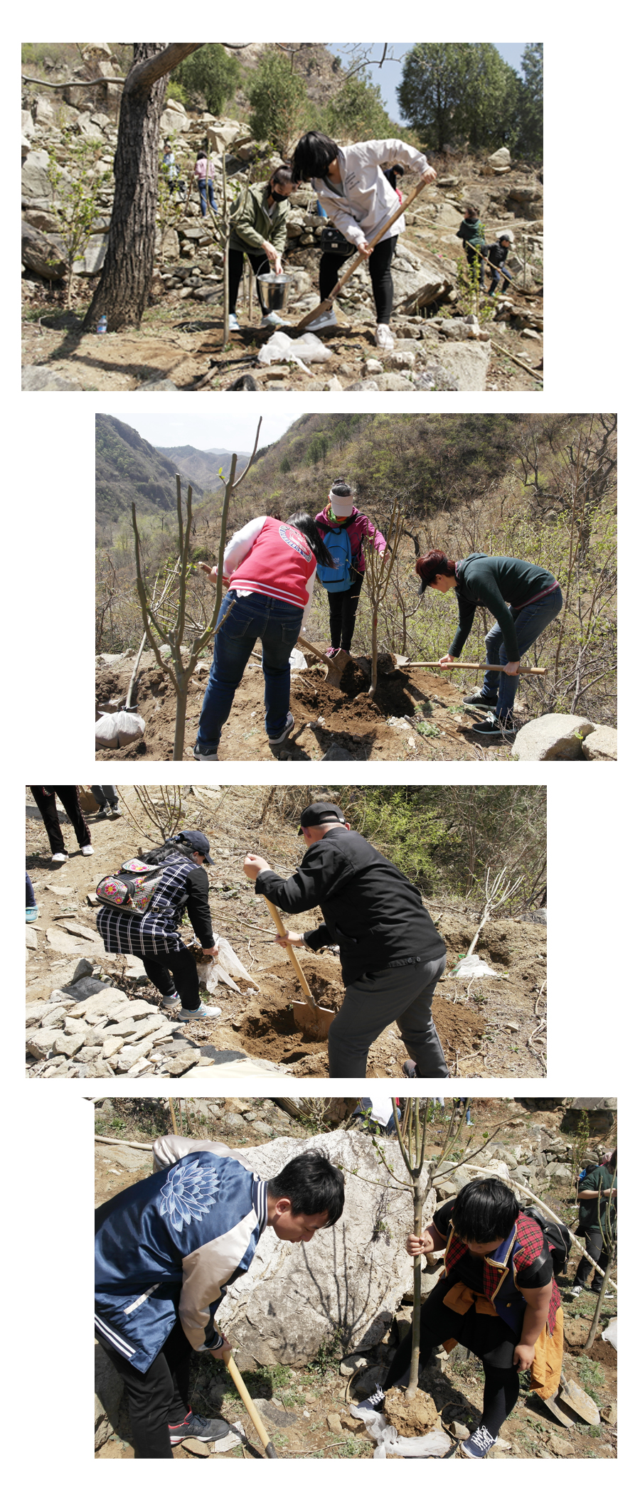 今年的公益植樹依舊選址懷柔區(qū)慕田峪長(zhǎng)城西,聽說去年種的小樹此時(shí)花開正盛,大家上山的腳步也更加輕盈,呼吸著郊外的新鮮空氣,一行人心情也和陽光一樣明媚。