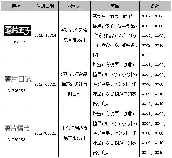 最后,如在先已有眾多包含“薯片”的商標(biāo)在第30類(lèi)商品上被核準(zhǔn)注冊(cè),如“薯片王子”、“薯片日記”、“薯片情書(shū)”等。可知,根據(jù)審查一致性原則,含有中文“巧克力”的商標(biāo)也同樣應(yīng)被核準(zhǔn)注冊(cè)在除“巧克力”等之外的商品上,何況申請(qǐng)商標(biāo)中的“CHOCOLATE”并不會(huì)使相關(guān)公眾將其翻譯為中文“巧克力”再加以識(shí)別或認(rèn)讀,因此根本不會(huì)對(duì)其原料口味等特點(diǎn)產(chǎn)生誤認(rèn)。