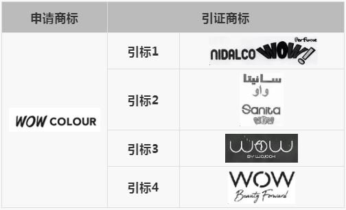 ”標樣僅是重復了“WOW”,與原標樣區(qū)別不大。最終,通過在“WOW COLOUR”的上方增加卡通圖形使三件申請商標獲準注冊。