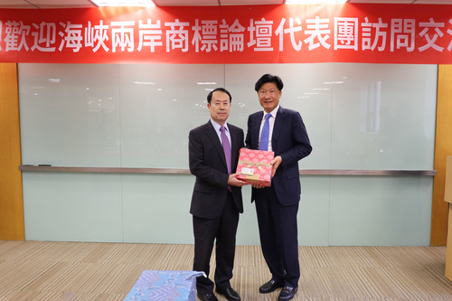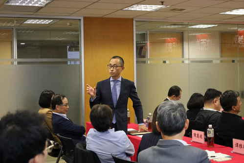 于澤輝所長對代表團蒞臨集佳考察表示熱烈歡迎,并與海商會副會長王桂良先生、副會長兼秘書長黃旭昇先生互相交換禮物。