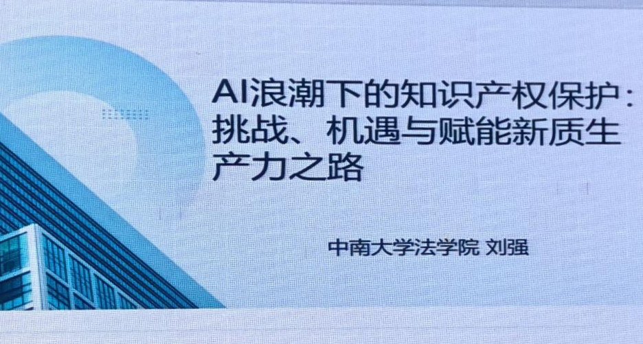 在專(zhuān)家培訓(xùn)環(huán)節(jié),中南大學(xué)法學(xué)院劉強(qiáng)教授帶來(lái)了一場(chǎng)精彩紛呈的專(zhuān)題分享。他以“AI浪潮下的知識(shí)產(chǎn)權(quán)保護(hù):挑戰(zhàn)、機(jī)遇與賦能新質(zhì)生產(chǎn)力之路”為題,深入剖析人工智能時(shí)代知識(shí)產(chǎn)權(quán)保護(hù)面臨的新課題,為與會(huì)者開(kāi)拓了新視野,啟迪了新思路。